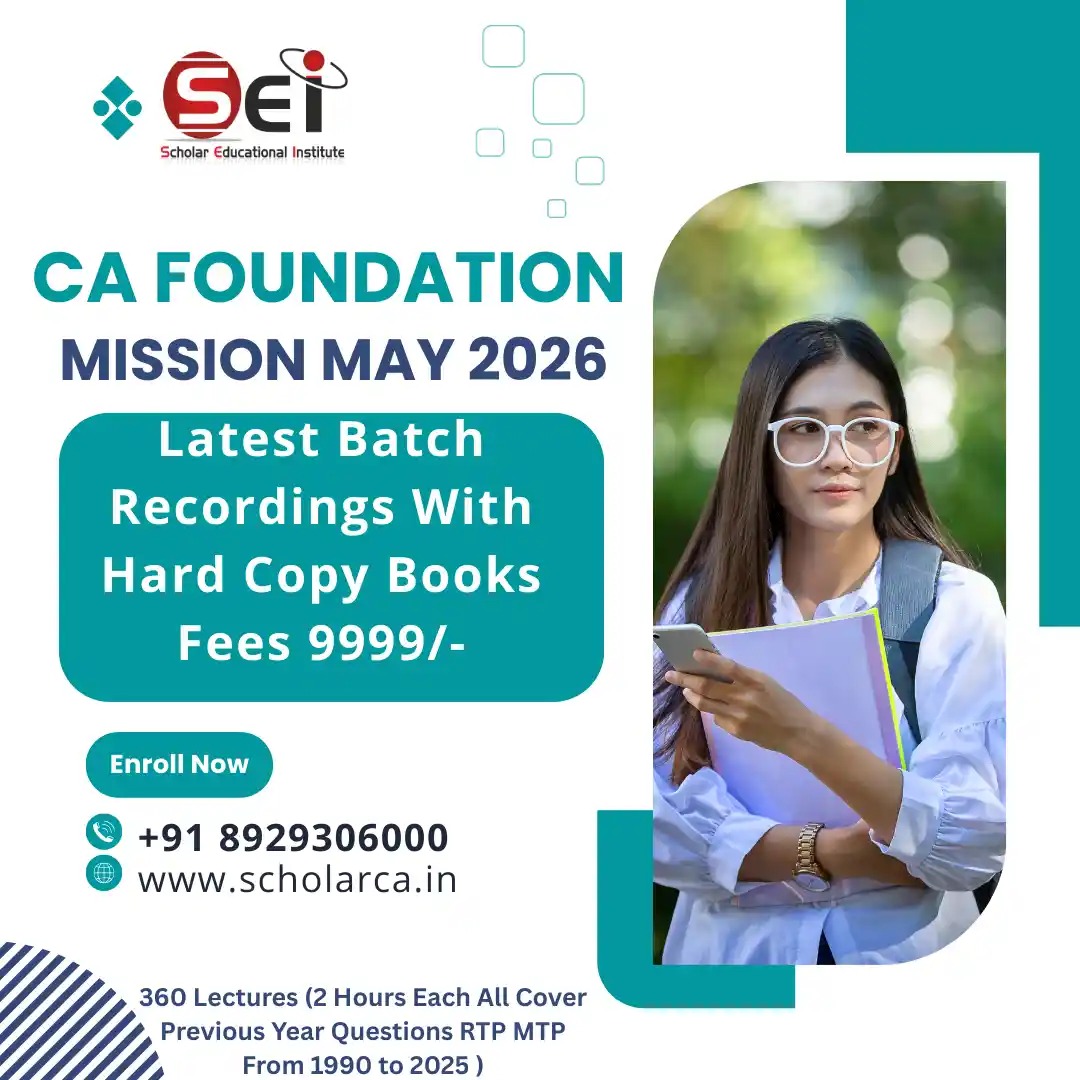 Scholar Educational Institute is the best CA Coaching Institute in India, offering classes CA course. By providing quality teaching, personalized guidance and conducting regular mock tests, SEI became the only CA Coaching in India whose students got the ever-highest marks in Foundation & Intermediate.